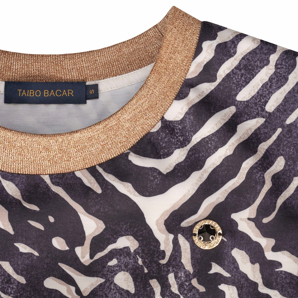 T-shirt crafted from soft, comfortable polyester featuring an allover print of the collection’s animal Monogram for a graphic signature. Crafted in a timeless straight-cut shape with a golden crew neckline.