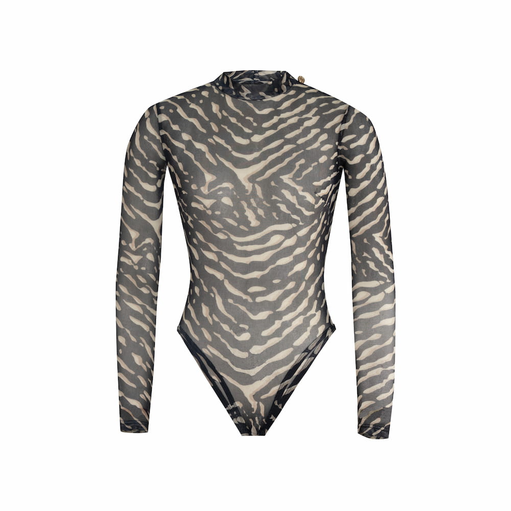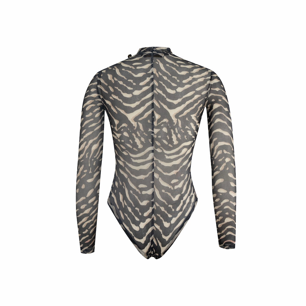 A long-sleeved shirt made from printed mesh fabric. Slim and fitted for a contemporary touch. A versatile clothing piece, brings a graphic touch to formal attires.