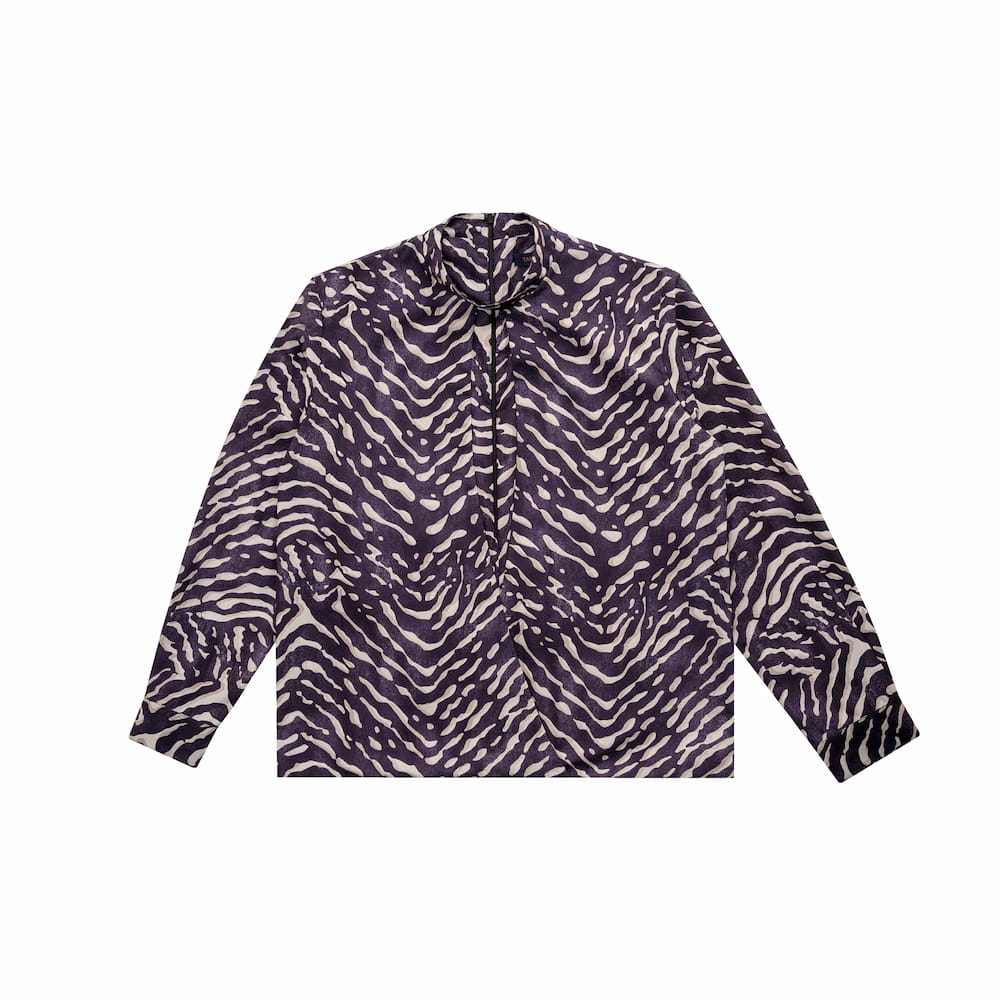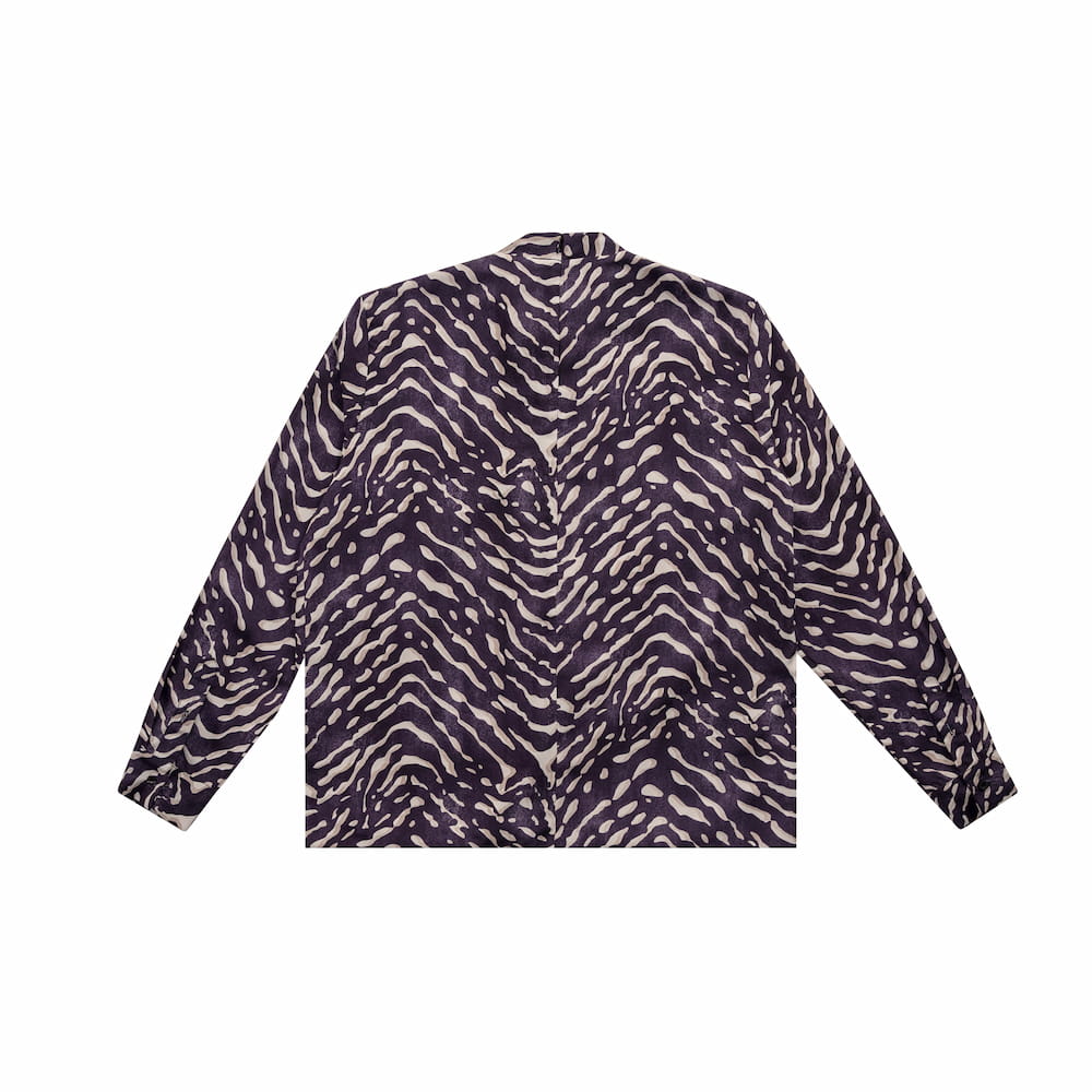 A long-sleeved shirt made from printed polyester fabric from the FW24 collection. Slim and fitted for a contemporary touch. This versatile clothing piece brings a graphic touch to relaxed attires and weekend looks.