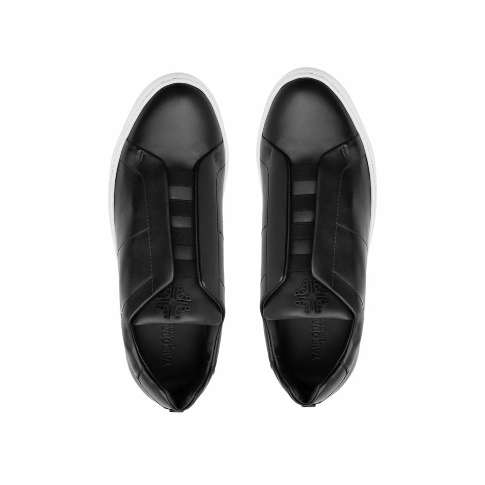Airy and elegant. A new sneaker on the market, perfect for our bipolar weather, fitted for both warmer and cooler temperatures. Black leather details to accentuate elegance but still minimal to highlight the simple design. Slip on easily with our lace-free triple elastic bands.