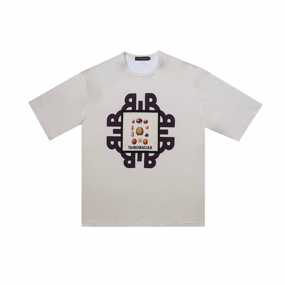 #TAIBOBACAR t-shirt featuring a semi-covered TB Logo and graphic motif screen-printed on the front. Medium-weight stretch jersey, oversized fit.