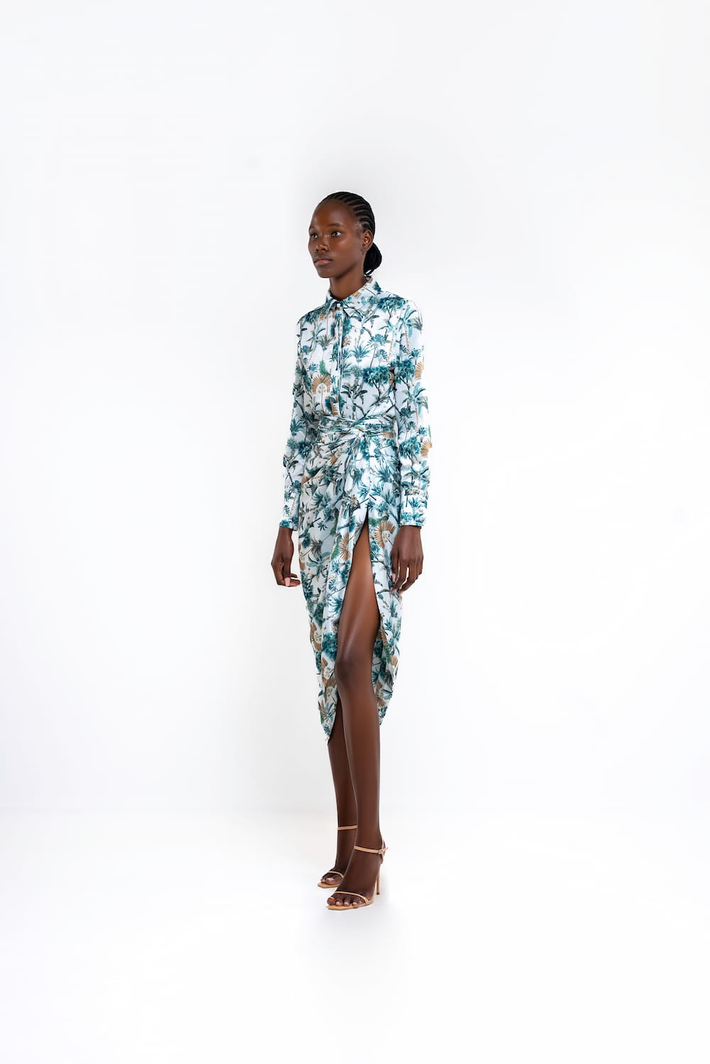 TB Sarong skirt, designed to be fitted at the waist and hips, creating the perfect silhoute and loose around the legs with a slit. Warapping skirt, fit for all body types.