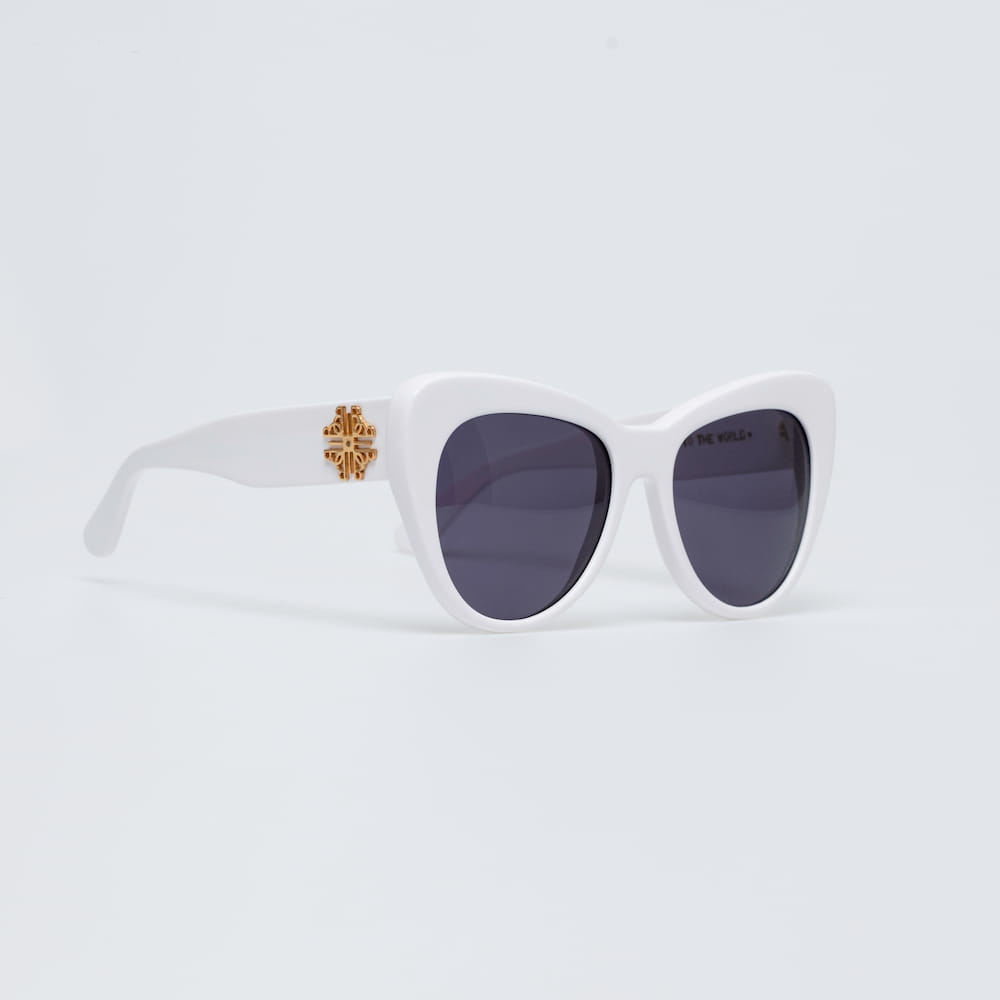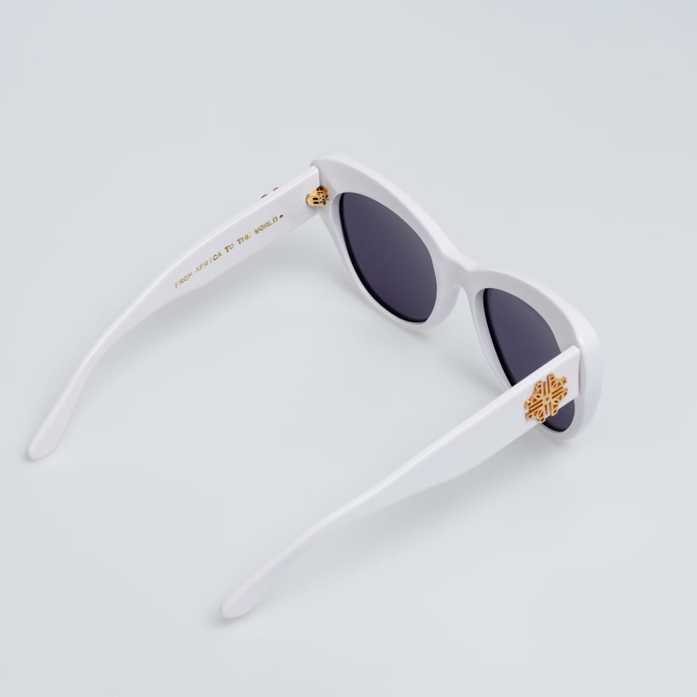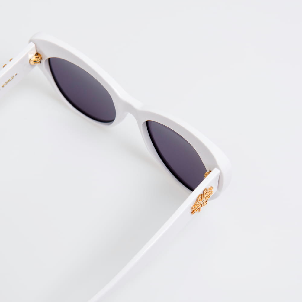 Frame: Acetate glasses with metal brand logo at righting left side of frame