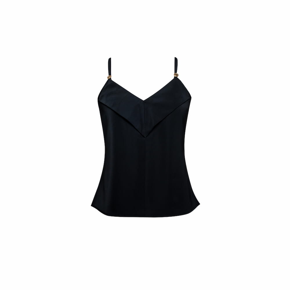 The Ximene top features a modest and feminine v-neckline and delicate spaghetti straps for a structured and elegant style.